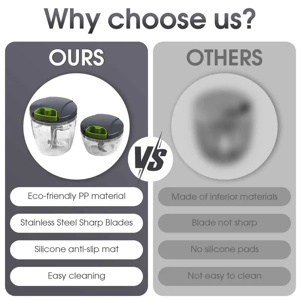 2.Exceptional Resistant: Crafted from high-quality materials, this mini garlic chopper comes with a thick PP lid that can endure thousands of pulls. Its robust nylon rope ensures quick and hassle-free operation while also safeguarding your food from safe contamination.